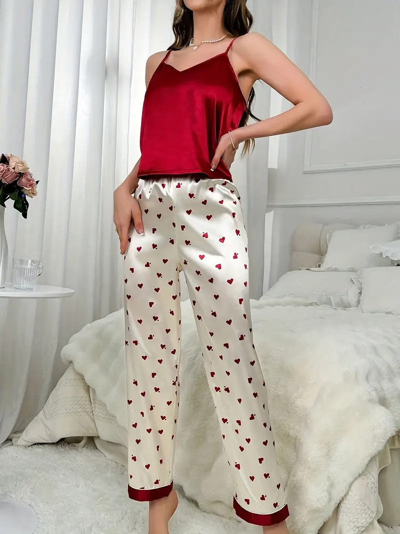 Heart Print Satin Elegant Pajama Set