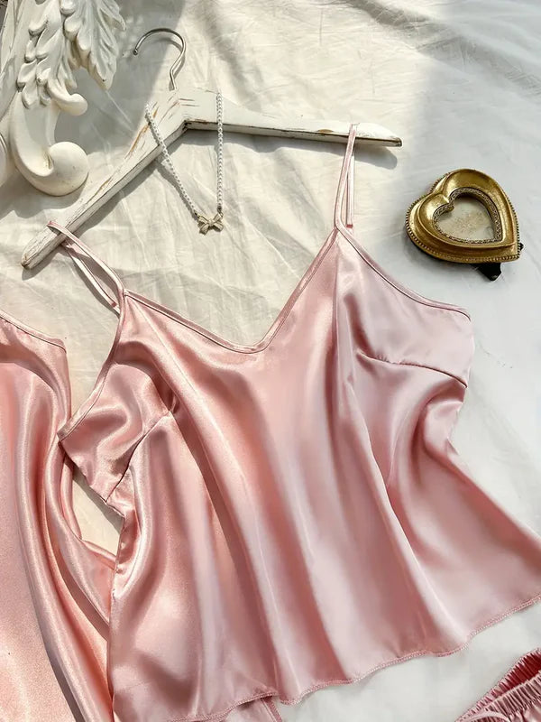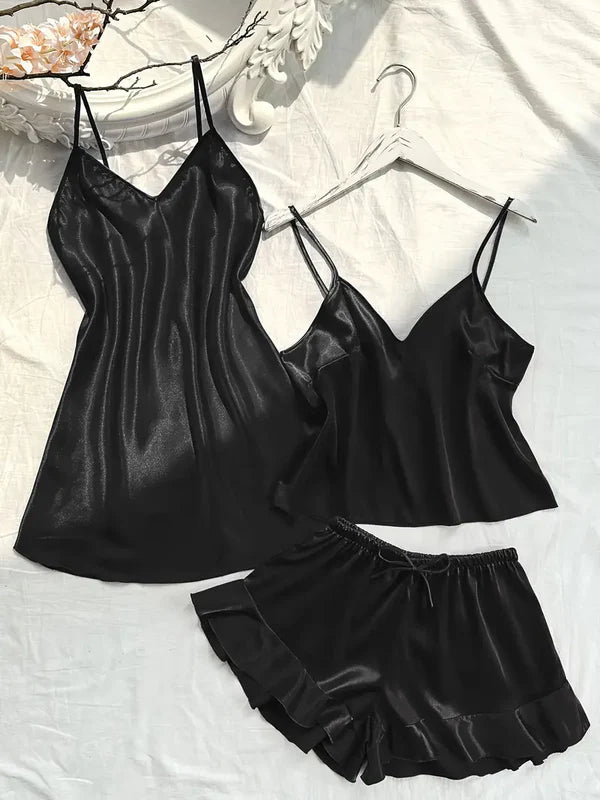 V Neck one piece with Cami Top & Flare Shorts Sleep dress, pajama set 3 pcs