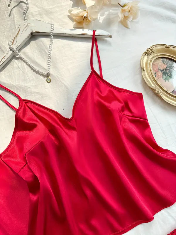 V Neck one piece with Cami Top & Flare Shorts Sleep dress, pajama set