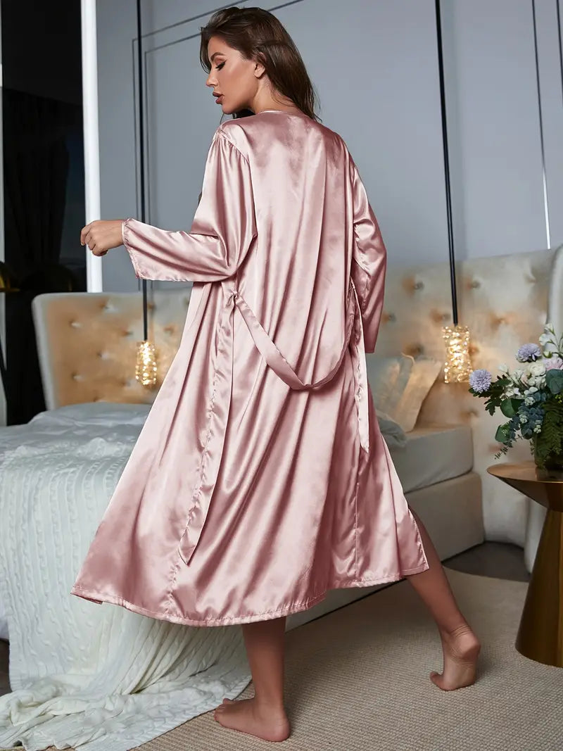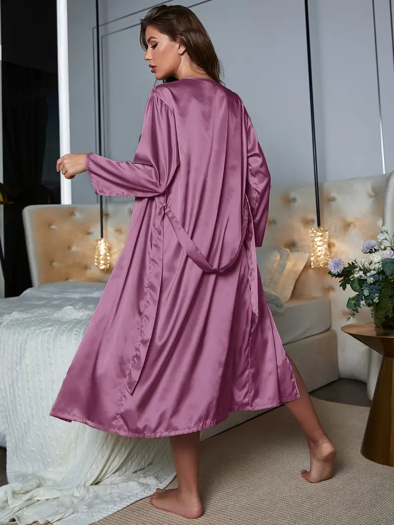 Long Belted Robe & Backless Cami V neck sleep dress set, Women's Sleepwear & Loungewear