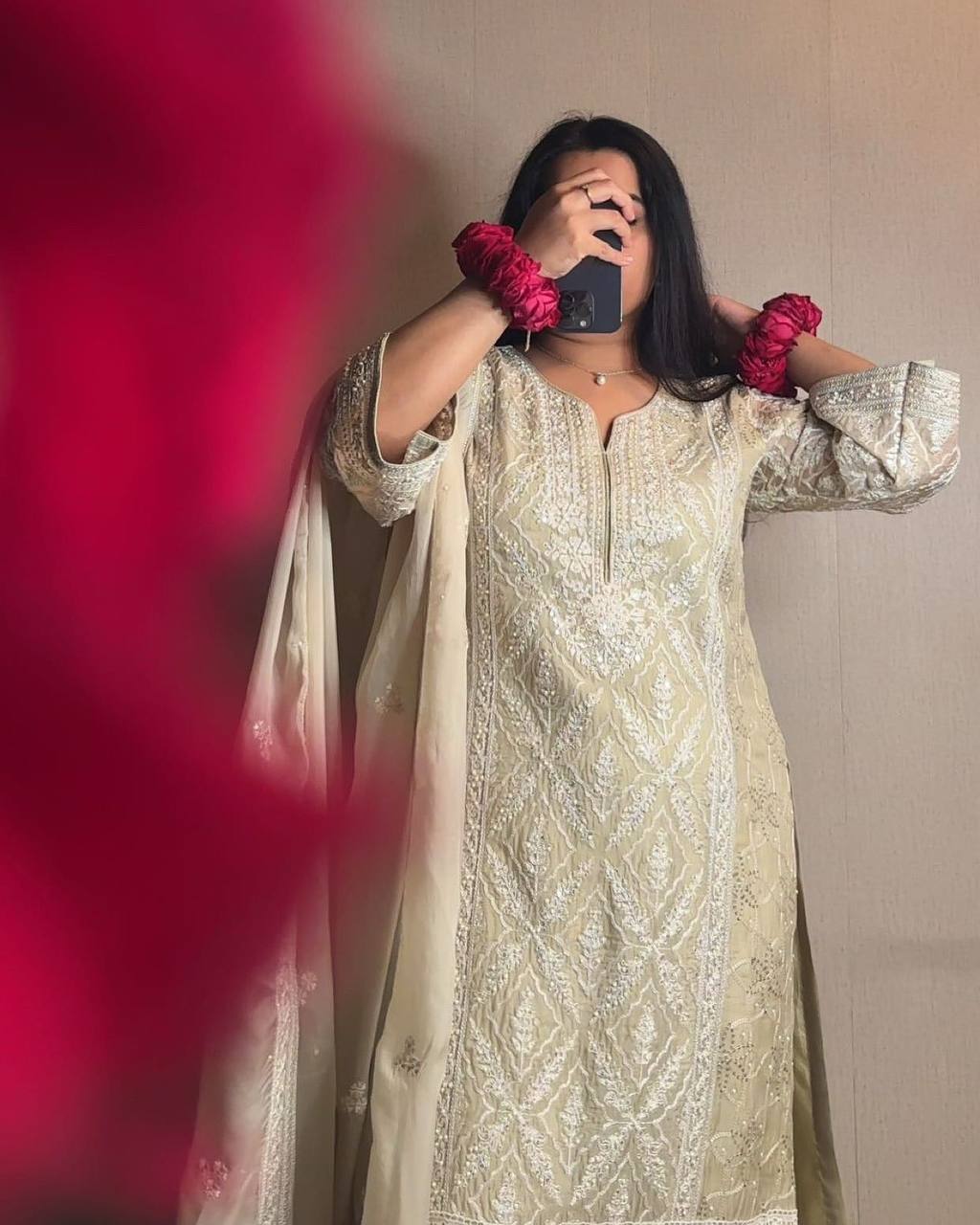 Heavy Faux Georgette Top Palazzo & Dupatta Set